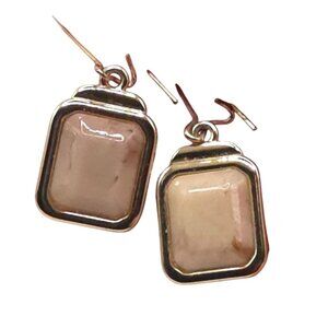 Gold-Plated Drop Earrings With Rectangular Brown Gemstone Accents