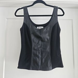 Chic tank top with faux leather panels. Ideal for a modern style.