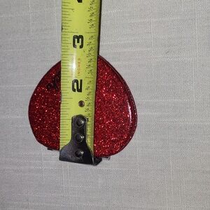 Size posted in pictures. Width of compact when closed is 1/4". NWOT. Red glitter with black Coach written on front. Silver accent inside compact mirror. Excellent condition. great gift idea.
