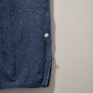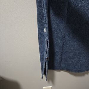 Vintage Blue Willi's denim/indigo blue pencil knit skirt, made in Denmark. Maxi length with a slit up to the knee with branded buttons on both sides. Heavy weight, warm and comfy.