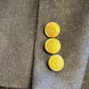 Elevate your style with this classic navy blazer featuring elegant gold buttons. Perfect for any formal occasion.