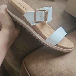 Experience effortless elegance with Shibever's white slide sandals. Perfect for casual outings.