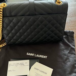 Saint Laurent Quilted Black Shoulder Bag with Gold Accents