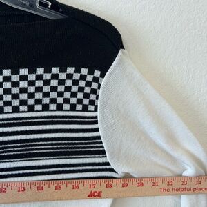Vintage Black & White Checkered/Striped Knit Boat Collar Long Sleeve SZ 6
