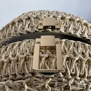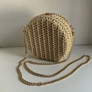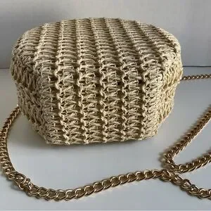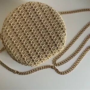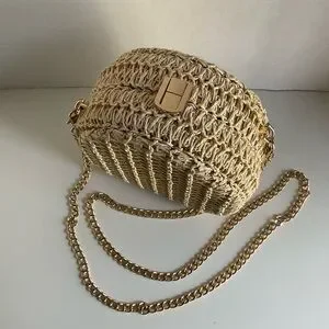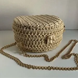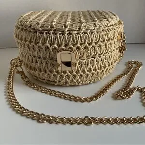 Haute Hippie Woven Raffia/Straw Crossbody Bag Gold Chain Strap