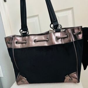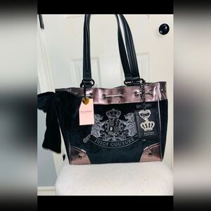 Chic tote with Juicy Couture emblem. Stylish black with metallic accents. Ideal for daily use.