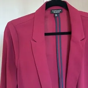 Topshop dark red /burgundy "chuck on" blazer with an easy open front. This effortless, clean-lined blazer not only goes with everything but elevates every look.