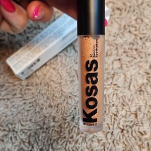 Kosas 10-Second Eyeshadow in the shade Supreme, which is described as a warm, glittery gold. This product is a clean, water-based, liquid formula designed for quick application, with a shimmer finish that is crease-resistant and long-lasting.