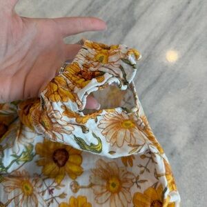 18M Baby Girl Gauzy Bubble Romper Yellow Floral Ruffle Sleeves and Legs