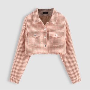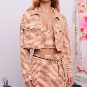 Cider Orange Tweed Houndstooth Raw Hem Crop Tank Top AND Jacket