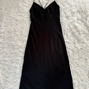 Madewell Crisscross Back Black V-neck Slip Midi Dress Size 0 (NWT)