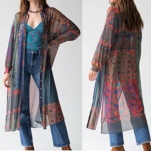 NWT Natural Life Sheer Patchwork Floral Mesh Maxi Shirt Dress Coverup Duster Kimono Boho Bohemian Beach.