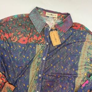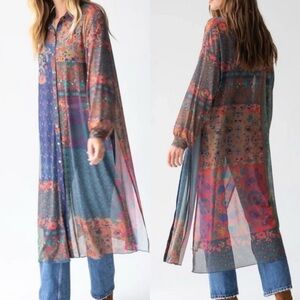 Natural Life Sheer Patchwork Floral Maxi Shirt Dress Coverup Duster Kimono Boho