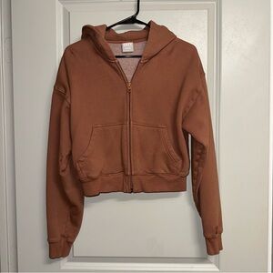 Aritzia Cozy Sweatfleece Boyfriend Boxy Zip Hoodie in brown, 78% cotton/22% polyester, size small - only worn a couple of times.
