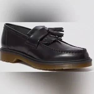 The Tassel Loafer is a subcultural classic and is offered here in our polished smooth leather, a twist on the classic Dr. Martens leather: durable, with a smooth and polished finish. The classic tassel loafer in Black Polished Smooth leather is made with Goodyear welt, meaning the upper and sole are heat-sealed and sewn together. Dr. Martens air-cushioned sole is oil and fat resistant and offers good abrasion and slip resistance.