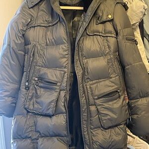 Stay warm and stylish with this women's gray puffer jacket. Perfect for cold weather, it features multiple pockets for convenience. Can withstand cold temperatures as low as -4 degrees farenheit