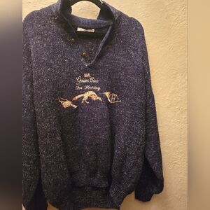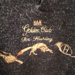 Vintage late 1980s / early 1990s graphic knit sweater featuring an embroidered “Golden Club – Fox Hunting” design.
