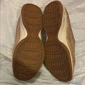 Eye-catching Skechers slip-ons with a glittery gold finish. Ideal for adding sparkle to any outfit.