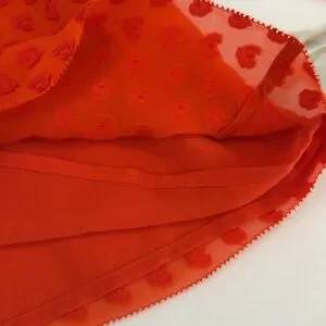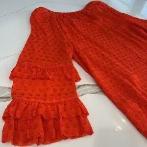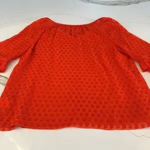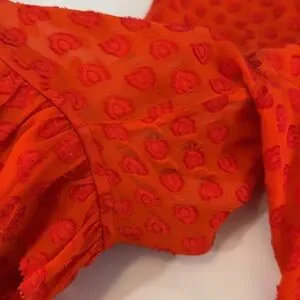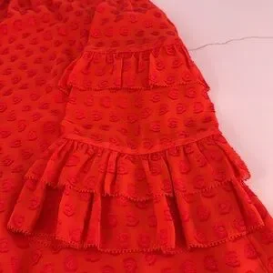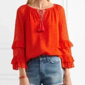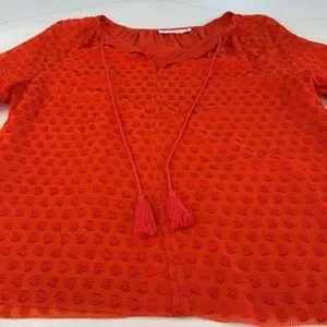 Vibrant red blouse. Features tassel tie and ruffled sleeves. Perfect for casual wear. Please see pics for minor wear due to material/wear.