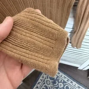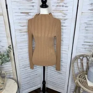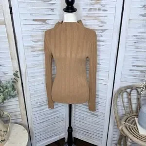 - MADEWELL Women's Leaton M Lightweight Ribbed Mock Sweater Heather Caramel Brown -