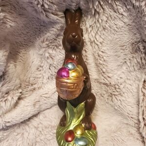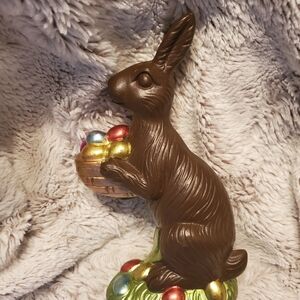 Easter Faux Chocolate Foil Bunny with Basket Eggs Centerpiece Figurine 8" Tall
