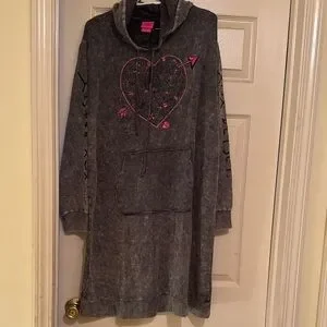 Betsy Johnson Torrid Gray Wash Arrow Heart Hoodie Dress Size 3X