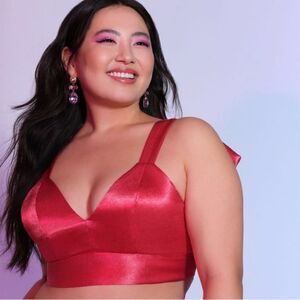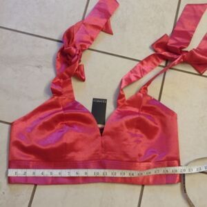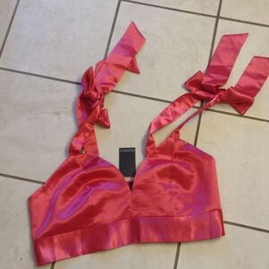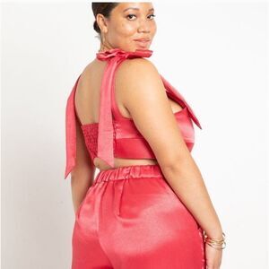New with tag hit pink satin Eloquii crop top/ bra with elastic back and bowtie straps. Size 22 please see measurements pictures to be sure of fit.