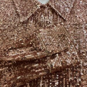 This gorgeous, sequined blouse speaks for itself: the craftsmanship and design means that every detail in luxurious, down to the beautiful fabric behind the placket covering the buttons. Whether worn with denim or to a formal event, this blouse will (certainly) shine.