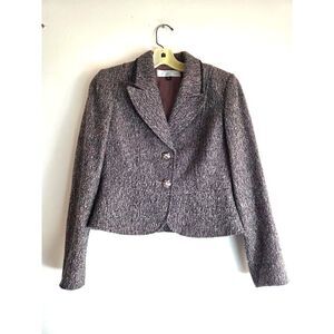 Tahari Brown w/Black Lace Trim Tweed Wool Blend Single Breasted Blazer size 4P