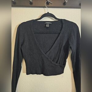 Elevate your style with this chic black ribbed wrap top from H&M. Perfect for any occasion, this top offers a flattering fit and timeless elegance.