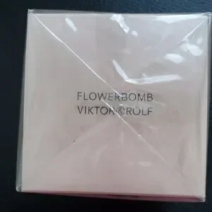 Luxurious scented candle by Viktor & Rolf. Encased in an elegant pink box with black accents.