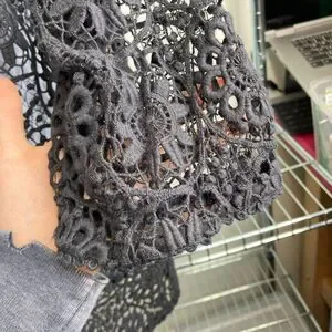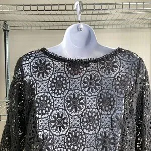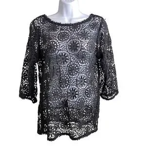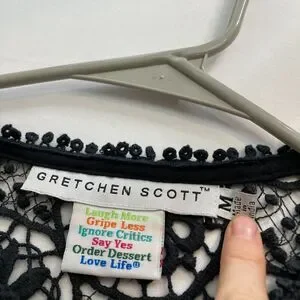 Gretchen Scott Women's Black Dark Floral Lace Fall Tunic Top Size M Boho Goth