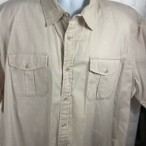 St. John's Bay Vintage Men's Beige 100% Cotton Cargo Button Down Shirt, Size XXL