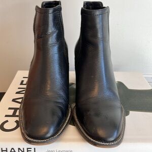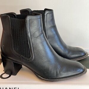 Elegant black heeled boots. Sleek leather design. Perfect for any occasion.
