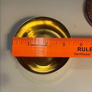 Vgt Red phoenix bird round brass trinket box w lid. Great condition & unique.