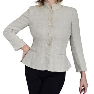 Lauren Ralph Lauren Linen Mandarin Collar Jacket Blazer Women’s 4P Ivory Twill