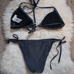 Michael Kors Dark Grey String Bikini With Silver Accents Size XS BS135