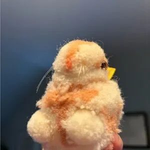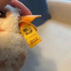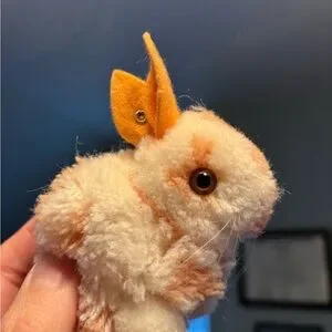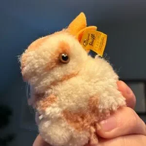 Steiff collectible bunny rabbit. Orange/tan and white. Approximately 4 whiskers on each side .