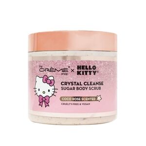 Coco rose scented luxury set featuring Hello Kitty. Includes bath bomb, body scrub, and bath crystals.
