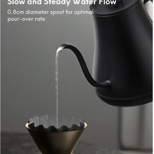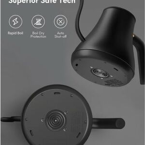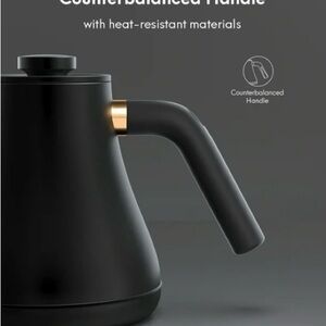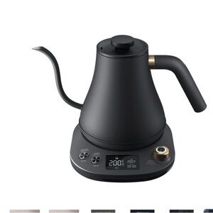 Modern black electric kettle with precise temperature control. Features a gooseneck spout for easy pouring.