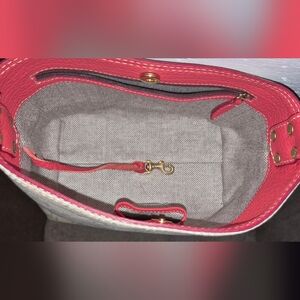 Stylish Dooney & Bourke women's bag in a striking red and tan combination. Perfect for adding a touch of elegance to any outfit.