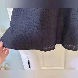 Excellent used condition. Navy scoop neck with flounce hem. Sleeveless with textured fabric. Perfect for a wedding or event. Measurements: 33” bust, 28 waist & 35” long. 99% Polyester & 1% Spandex. Machine wash cold. Tumble dry low.