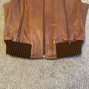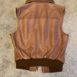VTG Moda International Brown Leather Vest with Faux Fur Size M Aviator Bomber