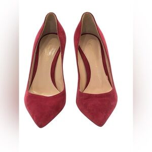 These are a pair GIANVITO ROSSI 85 suede pumps in size 36 with 3.25" stiletto heels. These fuchsia pumps are in very good condition with faint scuffs at the soles, box and extra heel tip included.