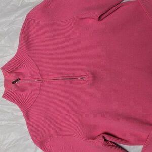 Lauren Ralph Lauren Vintage 90s Pink Ribbed 1/4 Zip Mock Neck Long Sleeve Shirt