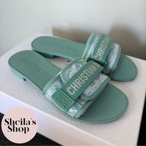 NIB Christian Dior Dioriviera Dio(r)evolution Slide Sandals Sky Blue Size 36