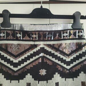 colours are black (base fabric) and sequins are in charcoal, silver and white