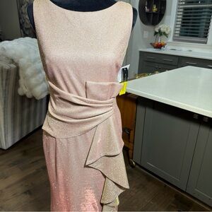 Betsy & Adam Glittering Asymmetrical Blush Dress