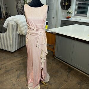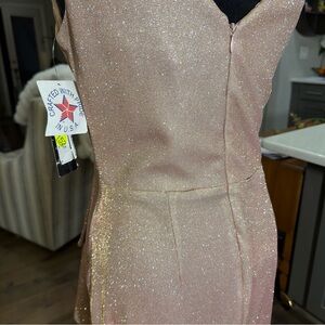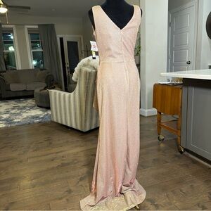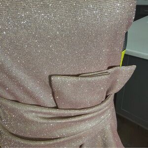 Elegant dress with a glittering blush hue. Ideal for special events.