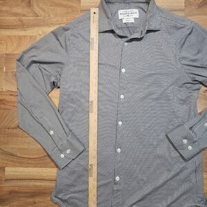 Mizzen+Main men’s dress shirt, size Large Trim Fit, black and white micro-check pattern. Long sleeve, button front, wrinkle-resistant performance fabric. Made in the USA. Excellent condition with no flaws.
